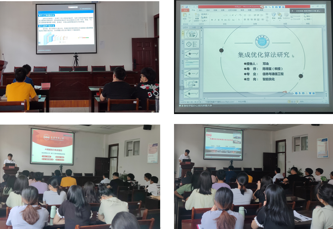 在学术报告环节,4位优秀研究代表从不同研究领域分别呈现了精彩的学术报告。淮北师范大学李飞扬、邓渝两位同学分享了题为《以细粒度显著区域引导的遥感图像场景分类》和《集成优化算法研究》的报告;122cc太阳成集团赵筛筛、邓志峰同学分别作了题为《AI赋能动力电池管控》和《光栅热变形影响谱合成光束质量的研究》的报告。报告间隙,双方同学围绕着4场学术报告的研究内容进行了交流和探讨。