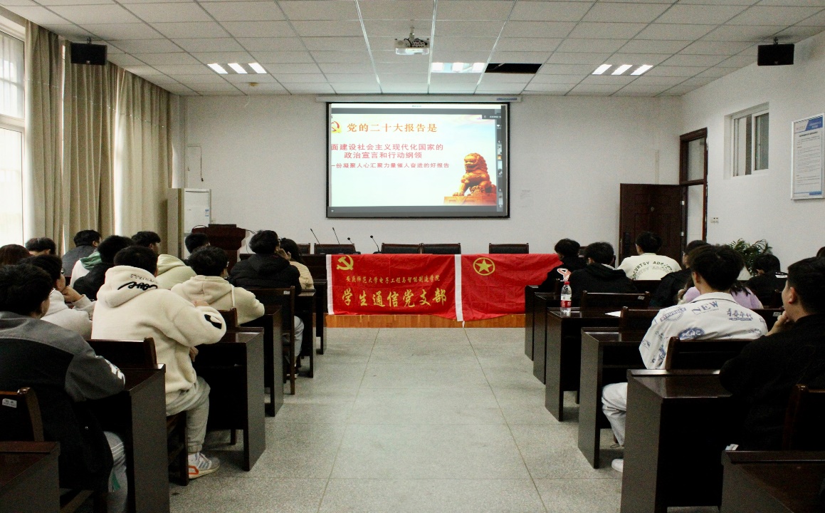 11月22日,学院员工通信党支部在稼先楼南104教室开展学习党的二十大精神宣讲活动。党支部书记周晨老师为通信工程专业2021级(1)(2)班团支部做学习党的二十大精神宣讲。