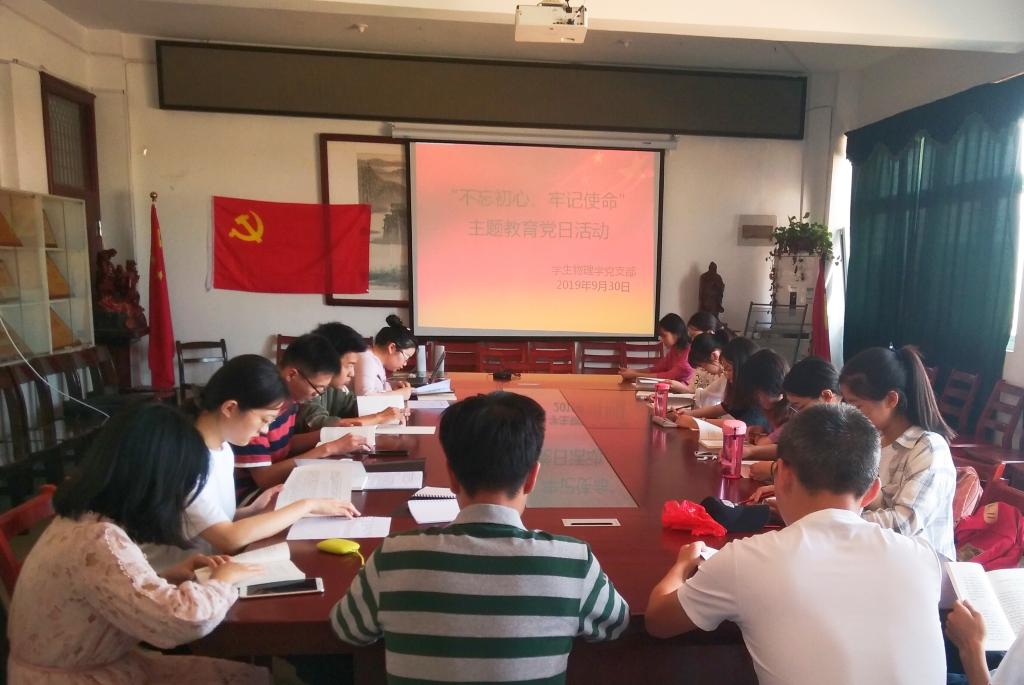 为庆祝新中国成立70周年,进一步加强党员理想信念教育, 根据“不忘初心、牢记使命”主题教育工作安排,9月30日,员工物理学党支部在稼先楼北218会议室开展“不忘初心、牢记使命”主题教育,本支部全体党员参加。