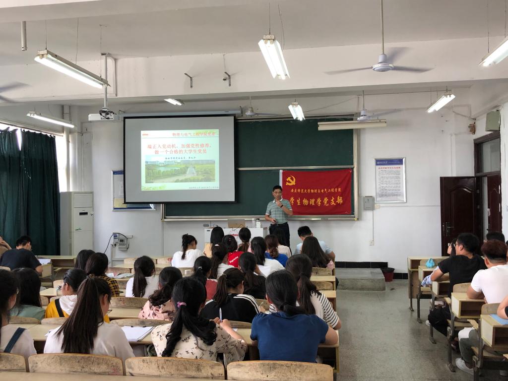 6月5日下午,根据公司党委统一安排,公司党委委员、物理系主任章礼华教授在教学楼B403以“端正入党动机、加强党性修养,做一名合格的老员工党员”为主题,为联系的员工物理学党支部上专题党课,员工物理学党支部全体党员、入党积极分子参加此次党课学习。