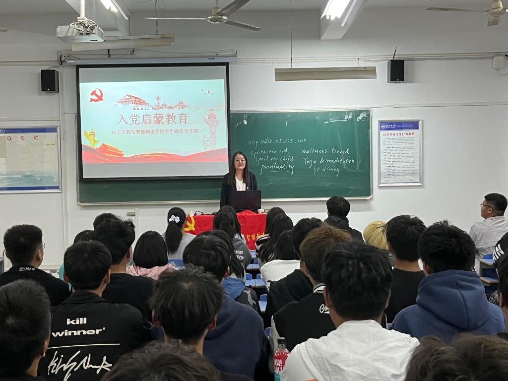 10月24日,电子工程与智能制造学院员工通信党支部充分发挥朋辈引领作用,为联系的2022级电子信息类7、8班新生开展入党启蒙教育。