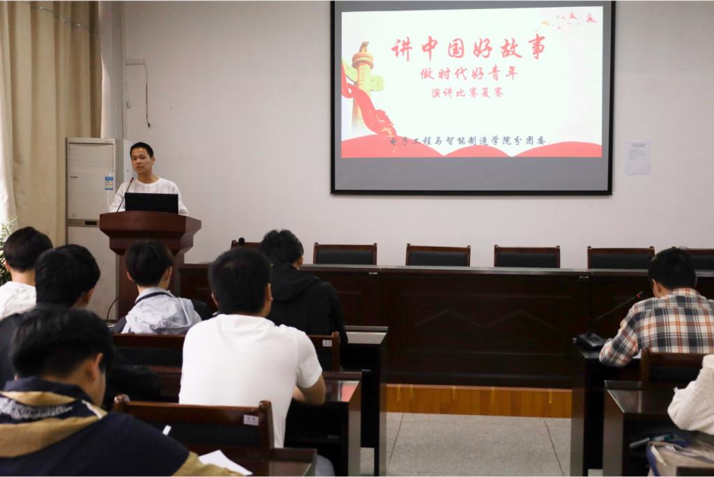 “承蒙先辈拼搏,中国雄姿重整,如今的我们接过了历史的交接棒……”随着微电子科学与工程专业2020级1班的潘原野演讲结束,场下响起了热烈的掌声。4月20日,电子工程与智能制造学院在稼先楼一楼会议室举行“讲中华好故事,争做时代好青年”演讲比赛。学院15名员工选手参加了本次比赛,团委负责人陈秋生比赛并担任评委。