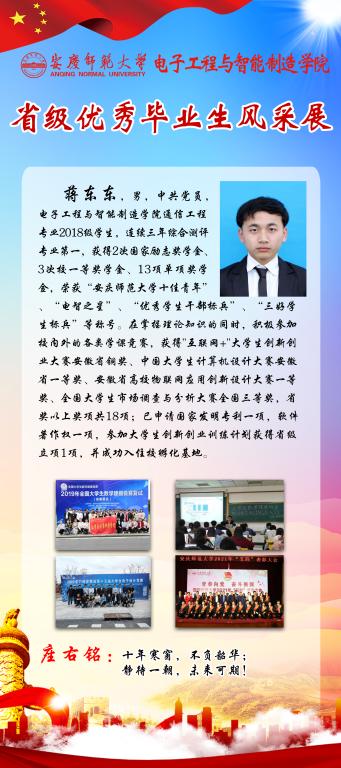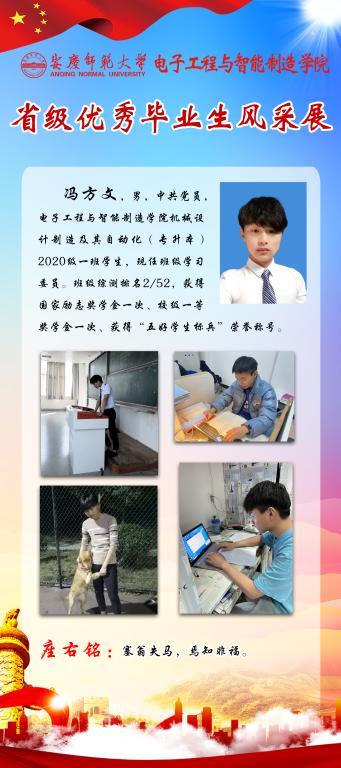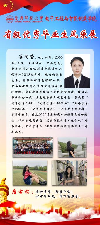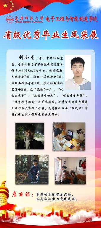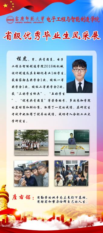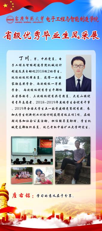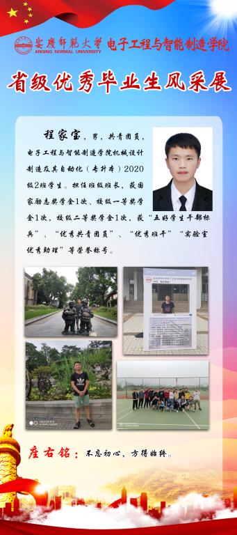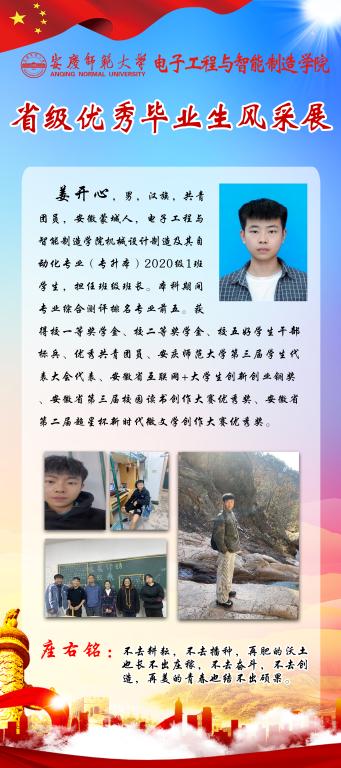 感受优秀的魅力,感知榜样的力量。又到一年毕业季,又一批电智学子即将站在新的起点,踏上新的征程。他们当中有17名同学获得省级优秀毕业生称号,勤奋好学、乐观向上、积极进取是他们共同的特点。为引导全体员工践行榜样精神,学知识、长才干,求进步,学院学团特推出“省级优秀毕业生风采展”系列,学习宝贵经验,开拓进取,不断前行。(撰稿:陈秋生 审核:关德军)