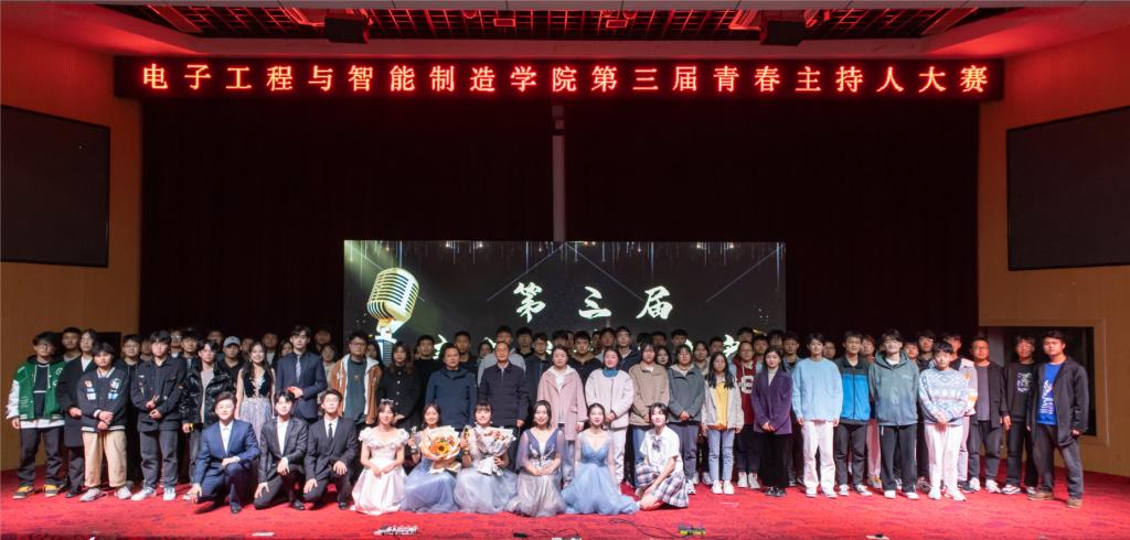 “聚焦话筒,星光灿烂。”11月16日晚,电子工程与智能制造学院第三届“青春主持人大赛”决赛在图书馆东厅拉开序幕。公司党委书记夏云高、党委副书记高栋梁、辅导员代表、教师代表出席大赛,近500名师生观看比赛。