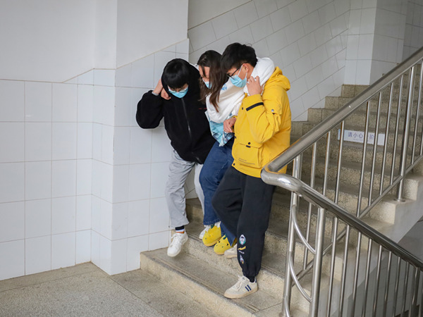 凌晨前往宿舍楼接送、接力背人爬上六楼、派送午饭和暖手宝......考试期间,志愿者们在教学楼和宿舍间奔波,开展了“三点两地”式服务。或是冻僵的双手或是冷风的凉意,志愿者们准时护送考研学子进考场,结合降温天气,提供保暖和饮食服务,用实际行动温暖着“天公不作美”的寒冷氛围。