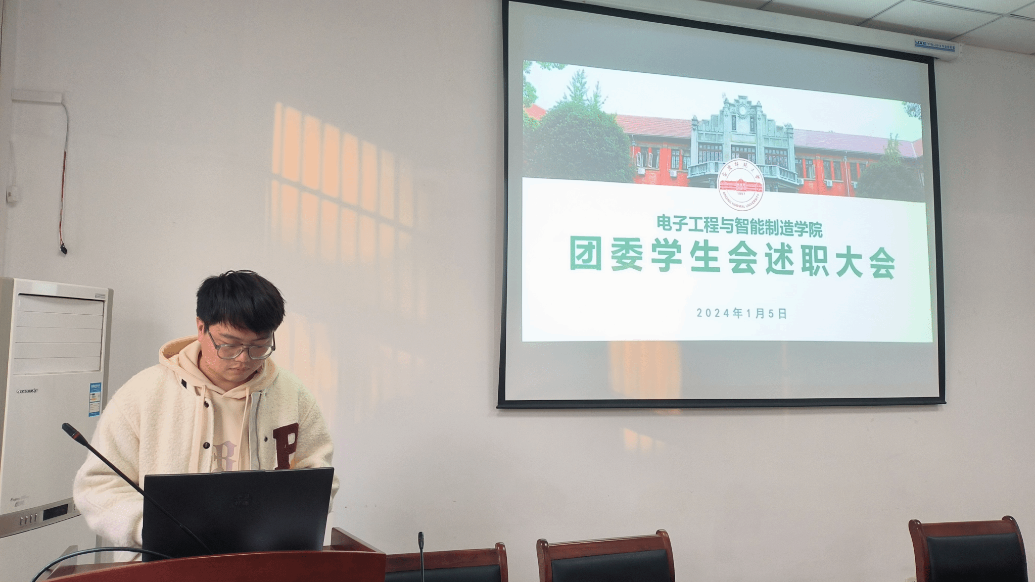 1月5日,学院召开2023年度团委、员工会工作人员述职大会,学院团委负责老师、团委员工兼职副书记、员工会主席团成员及员工会全体成员参加会议,会议由团委负责人刘旭老师主持。