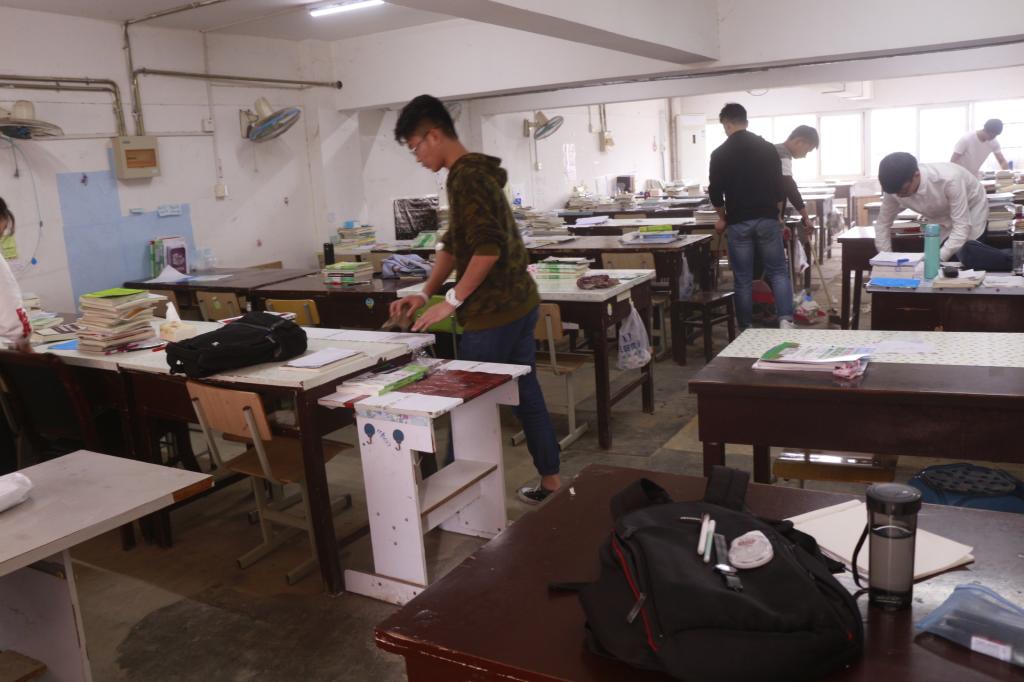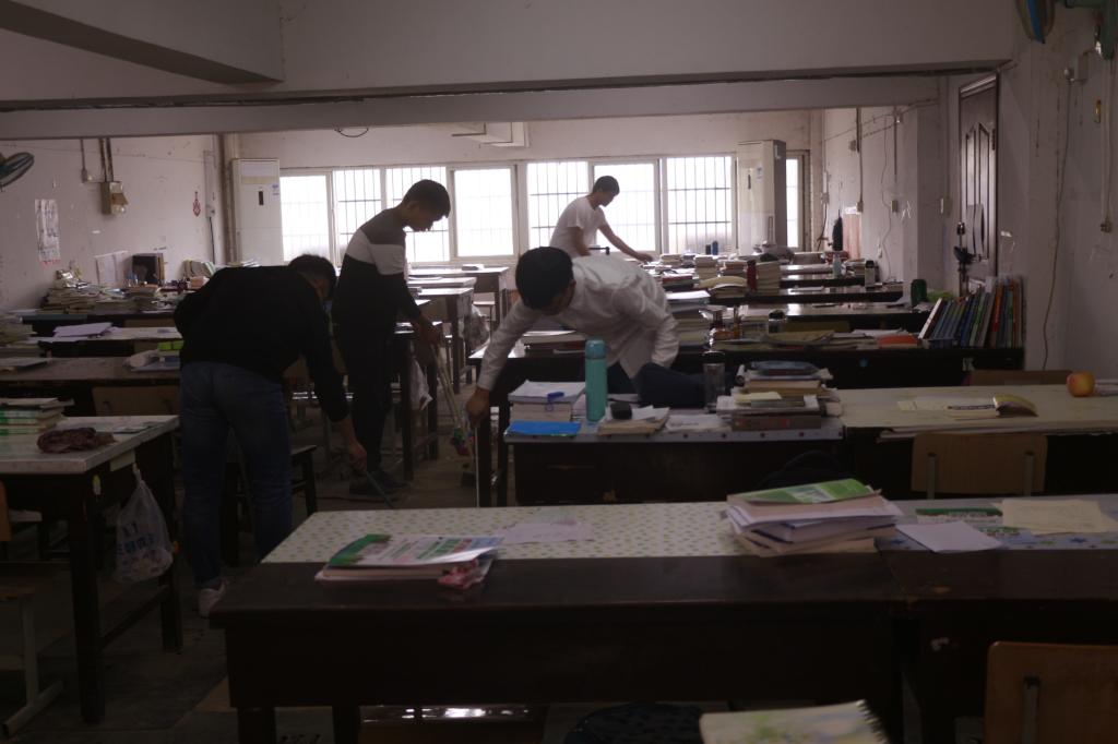 为尽量不打扰考生们学习,大家把活动定在午饭时间,中午12点,各志愿者在稼先楼多媒体教室集合,在活动小组组长为大家布置好工作任务后,同学们便迅速投入活动中来。有的同学清理了桌面上小广告和桌洞内的垃圾,有的同学用扫帚细心地将垃圾扫到一起。没有人嫌脏,没有人说累,大家干得热火朝天,自习室很快就变得干净整洁。