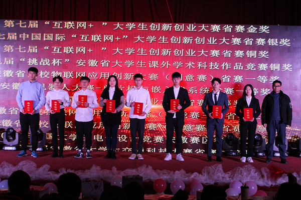 本次晚会分为“颂 青春”“舞 人生”“弘 精神”三个篇章,颁奖环节在每一篇章表演结束后有序进行,近百名师生受到嘉奖。国奖、励志奖、先进班集体、学科竞赛、退伍军人、优秀教师、优秀党员、优秀辅导员助理等在道德示范、学风创优、文体素质、创新实践方面取得荣誉的先进老师和员工受到了表彰。各奖项由该院老师“开奖”,为他们颁发证书并与其合影留念。