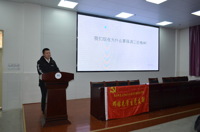 “‘创新是一个民族进步的灵魂,是一个国家兴旺发达的不竭动力。’一个民族的创新离不开技艺的创新。高凤林在他所参与攻关的多项重大项目中,不断改进工艺措施,不断创造新工艺,不断攻克一个个难关,从而达到世界第一的水准。” 邓稼先员工党支部党史学习教育宣讲团成员李昌宇深情并茂地宣讲道。12月22日,邓稼先员工党支部到怀宁中等专业学校开展党史宣讲活动,宣讲团成员李昌宇和赵生薇为学校全体员工干部进行了一场生动精彩的“工匠精神”宣讲报告。