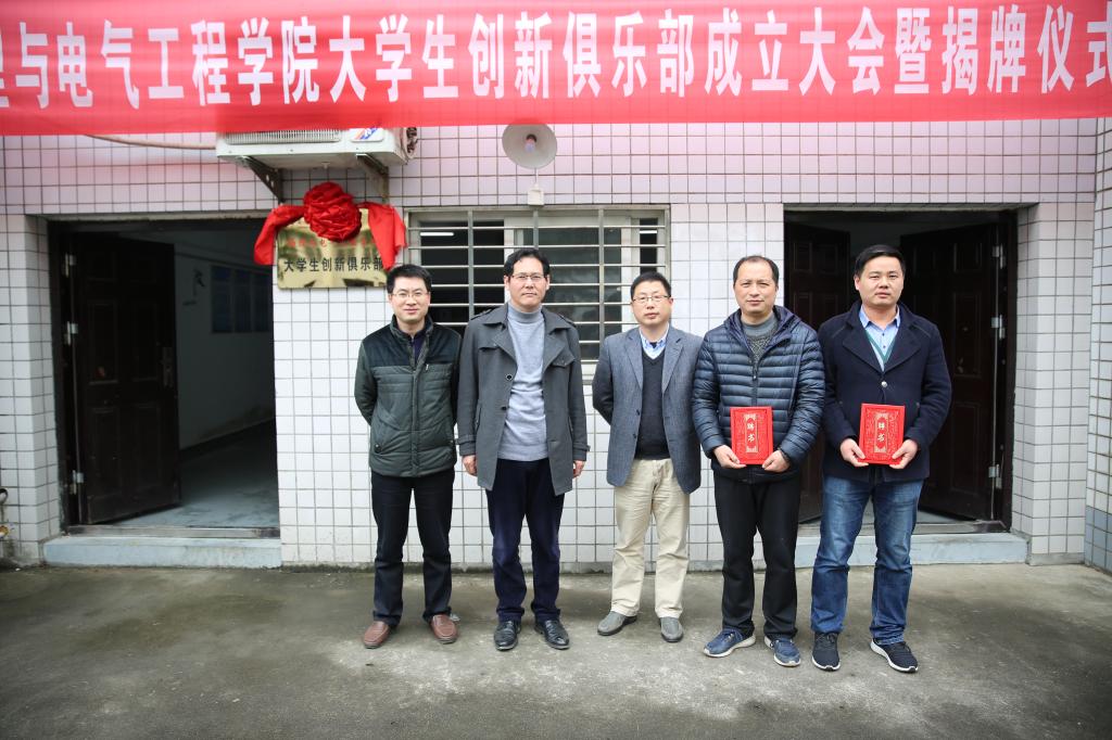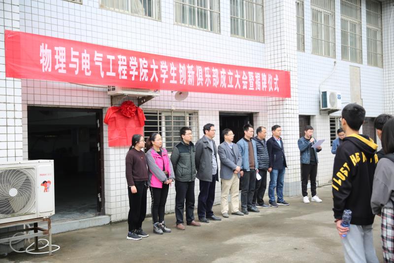 会上,学院副经理董甲东和江善和共同为老员工创新俱乐部揭牌;学院分团委负责人陈秋生老师宣读了《关于成立物理与电气工程学院老员工创新俱乐部的通知》;学院创新创业中心负责人陈世军老师和老员工创新俱乐部主席李豪杰同学分别进行了发言。
