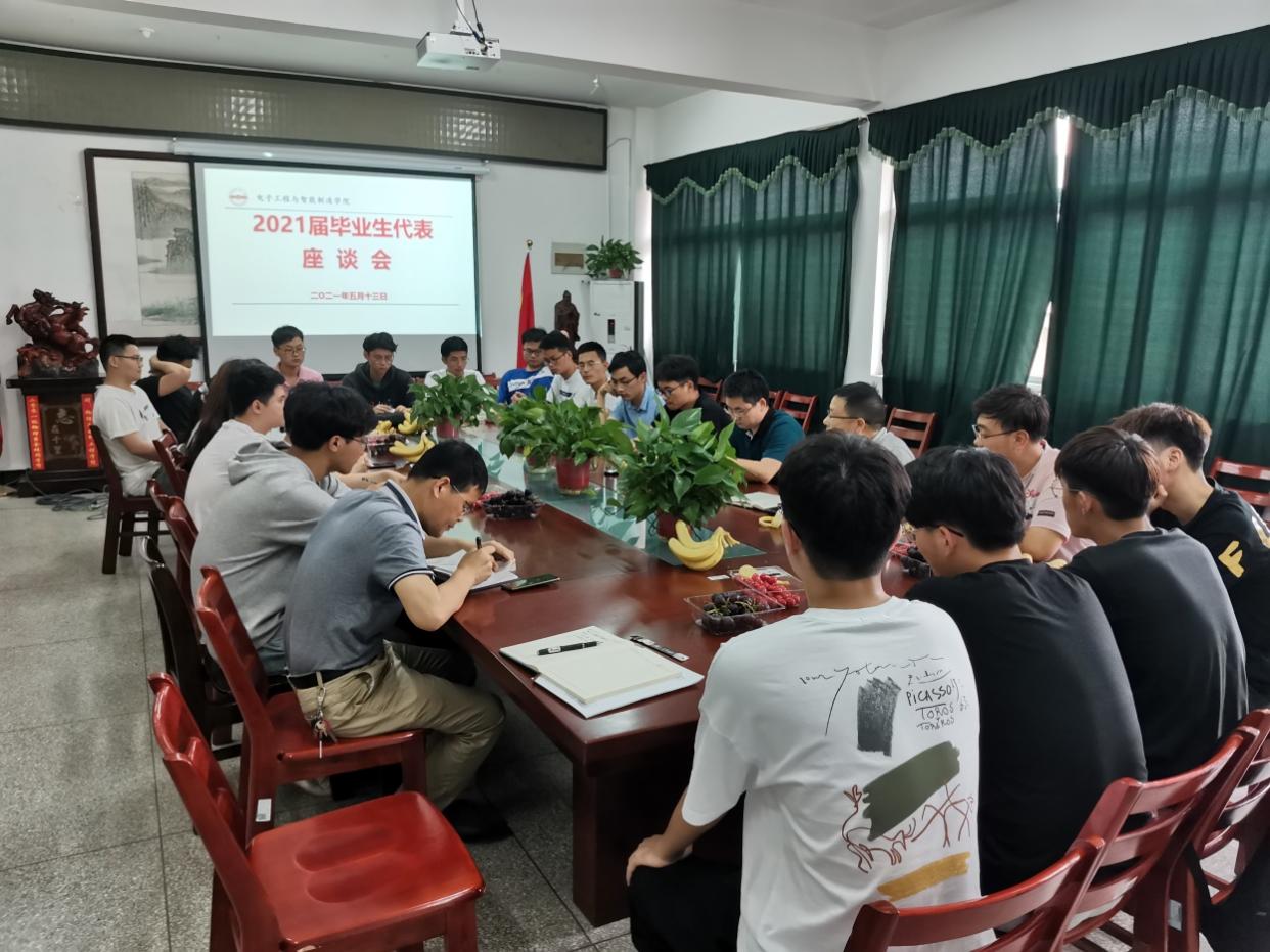 5月13日下午,公司2021届毕业生代表座谈会在学院会议室召开。学院副经理董甲东、副经理江善和、辅导员代表、教师代表以及30余名毕业生代表参加了座谈会。座谈会由副经理江善和主持。