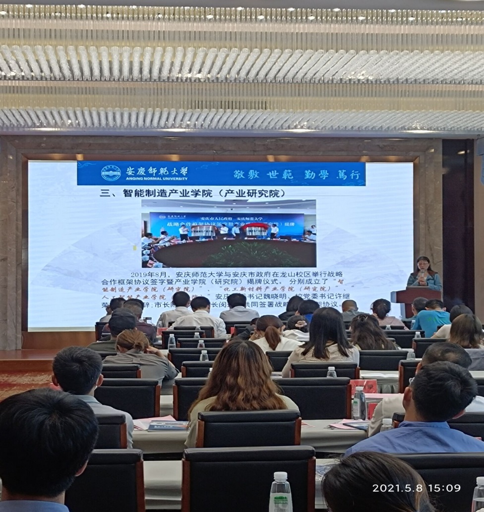 为全面贯彻落实习近平新时代中国特色社会主义思想和党的十九大精神,安徽省实施“四送一服”双千工程,送思想、送政策、送项目、送要素,服务实体经济高质量发展。5月8日下午,安庆市经开区举行“四送一服”科技创新要素专项对接会,贯彻落实市委市政府做好“六稳”“六保”工作要求,推深做实“四送一服”,促进科技成果转化,公司智能制造协同创新中心积极参与,会上,吴磊教授、张朝龙教授分别做了专题报告。