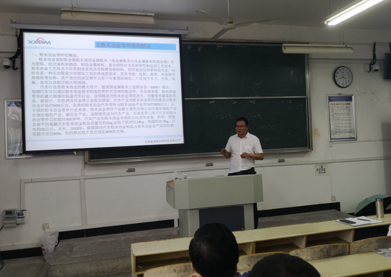 2021年5月26日下午,应我学院邀请,安徽鑫铭新材料科技有限公司董事长袁春在教学楼B楼205教室作了题为“粉末冶金技术工艺在汽车行业的应用”的学术报告。报告会由机电系主任吴磊教授主持,机电系部分教师和机械专业员工聆听了报告。