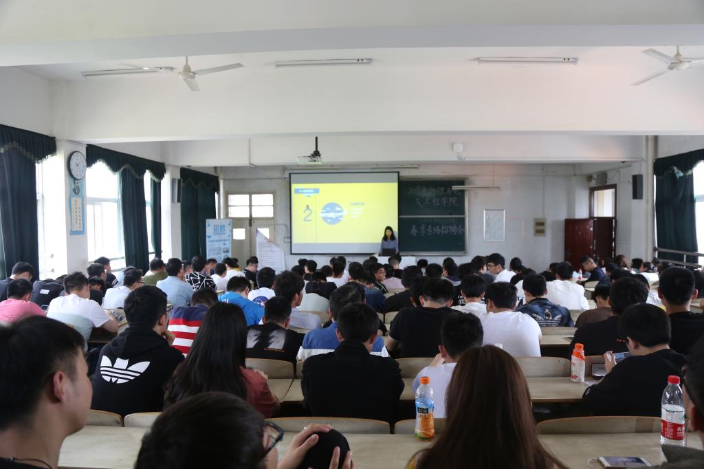 招聘会开始前的企业宣讲环节吸引了众多同学,稼先楼多媒体教室座无虚席,同学们聆听企业的介绍,有的同学甚至站着听完了宣讲。二十五个企业先后介绍了各自企业的详情以及招聘要求,并介绍了企业的待遇和福利。