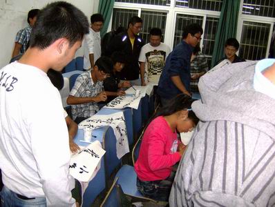 大赛分为硬笔、软笔、粉笔及绘画四个组。选手们用手中的工具展现出自己的才气。软笔、硬笔,都聚集着下笔如有神的气魄,俊秀的字体也同样透着阳刚之气。本次比赛得到两院新生的积极参与,共提交作品112份。现场气氛十分活跃,并引来大批同学前来观看。