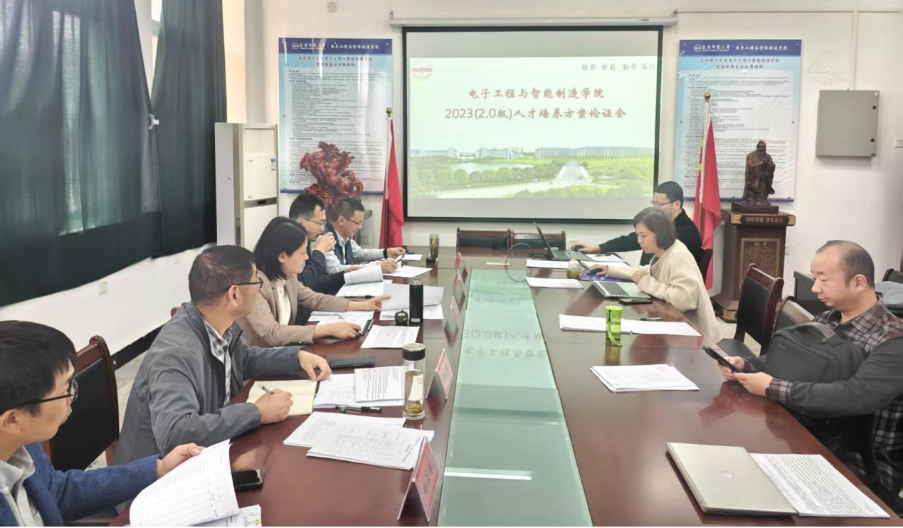4月13日,电子工程与智能制造学院在稼先楼南会议室召开2023(2.0)版本科人才培养方案论证会。邀请合肥工业大学电气与自动化工程学院副经理孙伟教授、安徽建筑大学电子与信息工程学院汪莉丽教授、安庆中船动力配套有限公司总经理陆程翔和安庆移动市区分公司副总经理解军等校外专家进行指导。学院经理董甲东、副经理章礼华,各系主任、专业负责人、教研室主任和教师代表参加了本次论证会。
