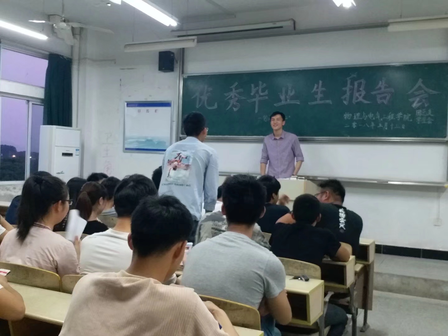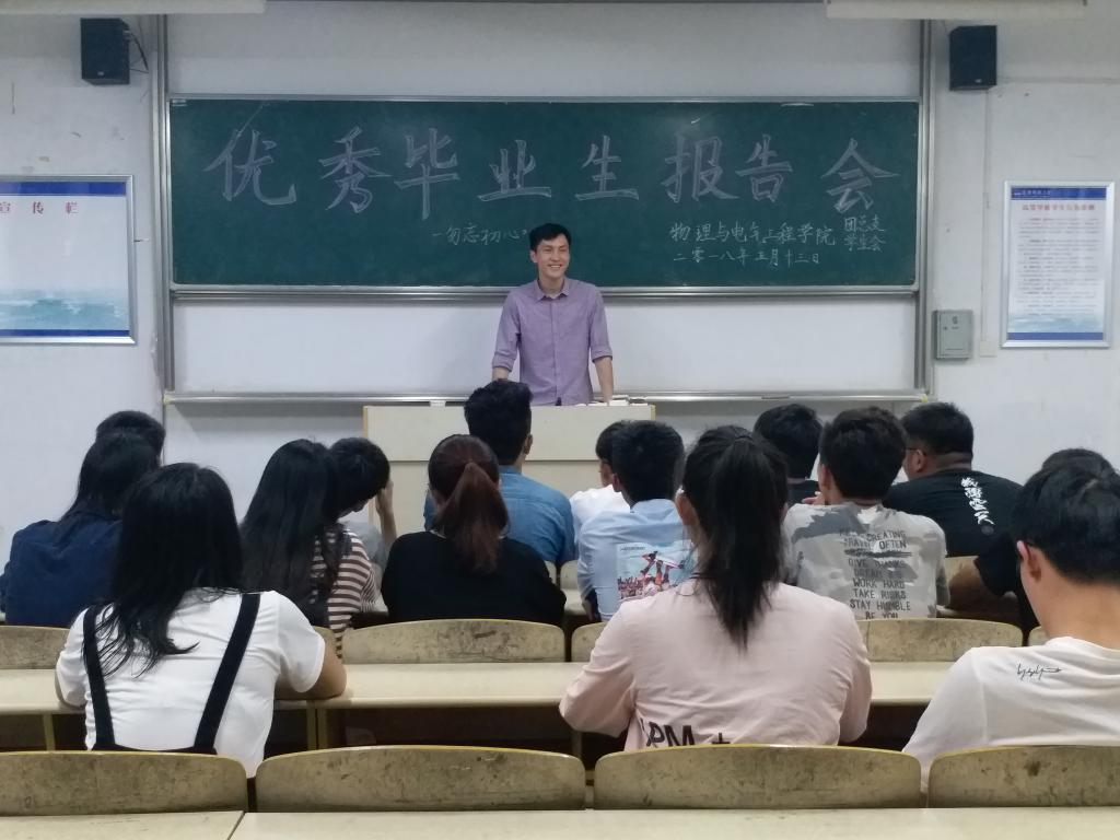5月13日晚,公司在B楼503教室举办优秀毕业生报告会。此次报告会邀请公司优秀毕业生校“十佳青年”王和政、校“十佳青年”方志、院员工会副主席梁辉等三位优秀学子,他们从不同的方面和角度分享自己成长成才的奋斗历程和励志事迹。公司100余名员工参加了报告会。