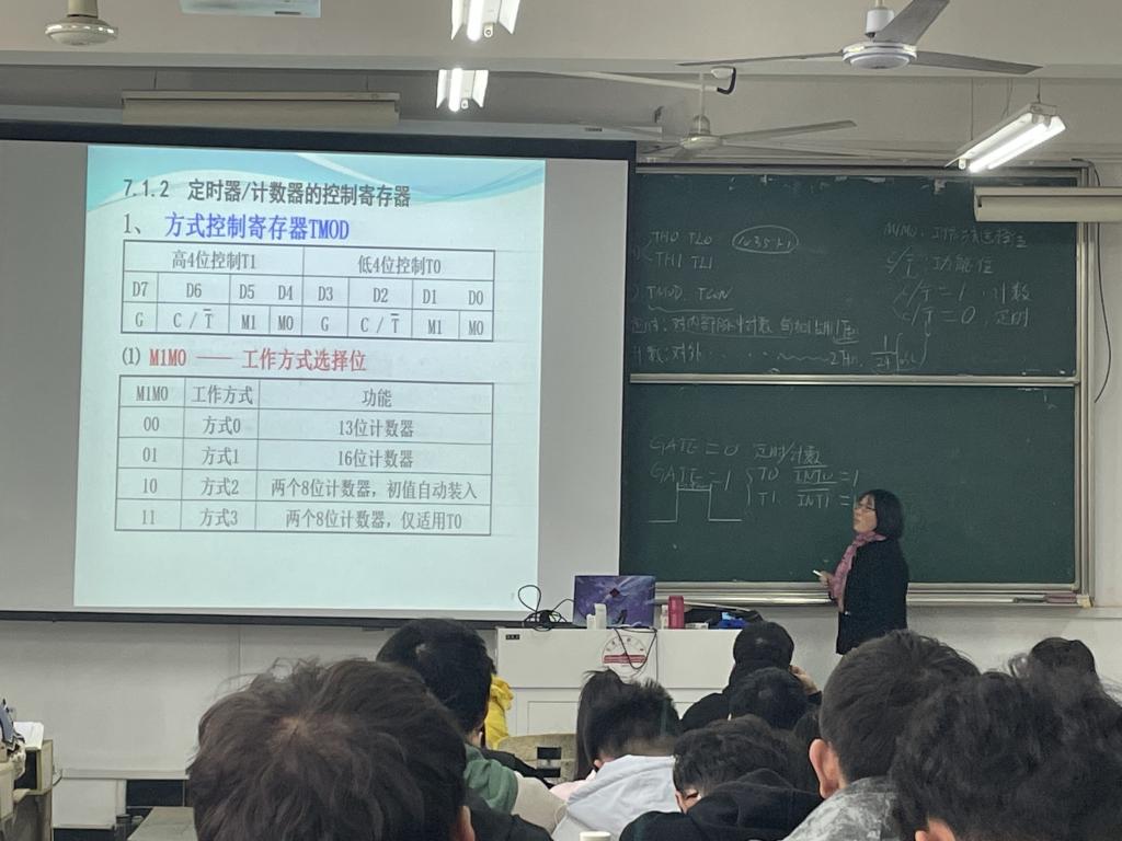 在教学楼B407教室,郭玉老师以其扎实的专业知识和严谨的教学态度讲授了《单片机原理及应用》课程中的“定时器/计数器”这一内容。郭老师结合板书设计和多媒体辅助教学将本节知识串联,层层设问、启发诱导。结合身边实例,帮助员工深入理解定时器/计数器的控制寄存器及其工作方式,突破了教学重难点。郭老师授课极富感染力,有效调动了员工积极主动思考,体现了“以本为本”教学理念。课后夏书记充分肯定了郭玉老师的教学水平,参与听课的青年教师还就教学内容、教学方法、员工课堂表现等与郭老师进行了深入交流。