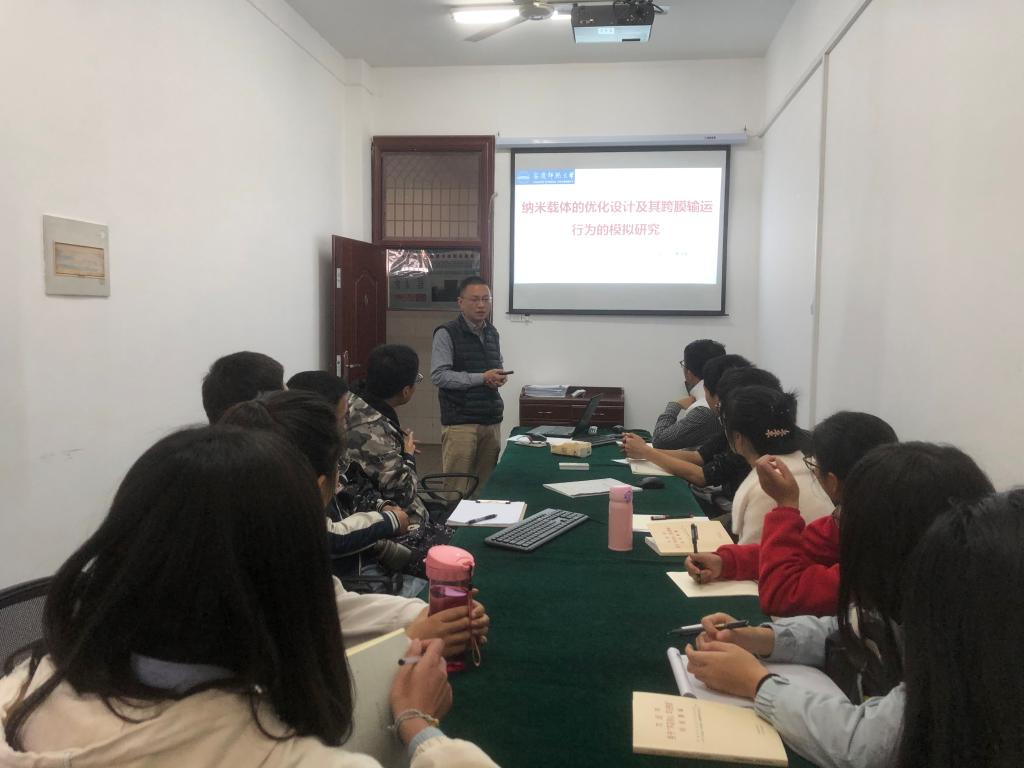 11月20日下午,公司夏强胜博士在稼先楼北410作了一场题为“纳米载体的优化设计及其跨膜输运行为的模拟研究”的学术讲座,2016级和2017级物理学专业员工参加了此次讲座。