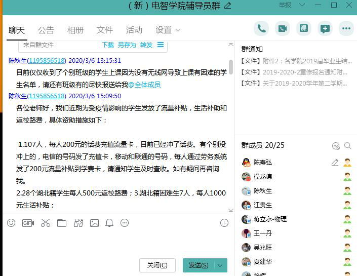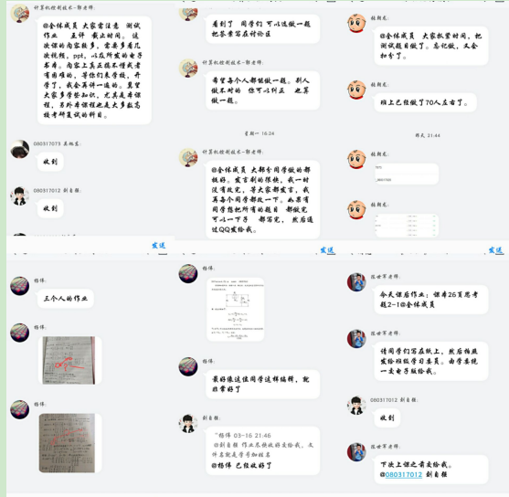 除了线上授课之外,系部教师尤其注重互动与交流,课后在建立学习群中布置课后作业,并在群里引导员工思考,针对员工提出的问题,教师会及时总结和复盘,帮助员工梳理学习中的遗漏点。2017级自动化1班的杨婷说:“计算机控制的作业有互评环节,老师让我们在主动批改其他同学作业的基础上反省自己,寻找差距,巩固提高,这是以往线下中所没有呈现过的”。此外,系部教师还主动创建考研交流群,针对员工提出的考研院校、填报专业、考研成绩、是否有调剂意向等疑惑以及希望获得帮助上给予耐心解答。非常时刻,系部教师关注员工的身心健康动态,引导员工培育理性平和的健康心态。