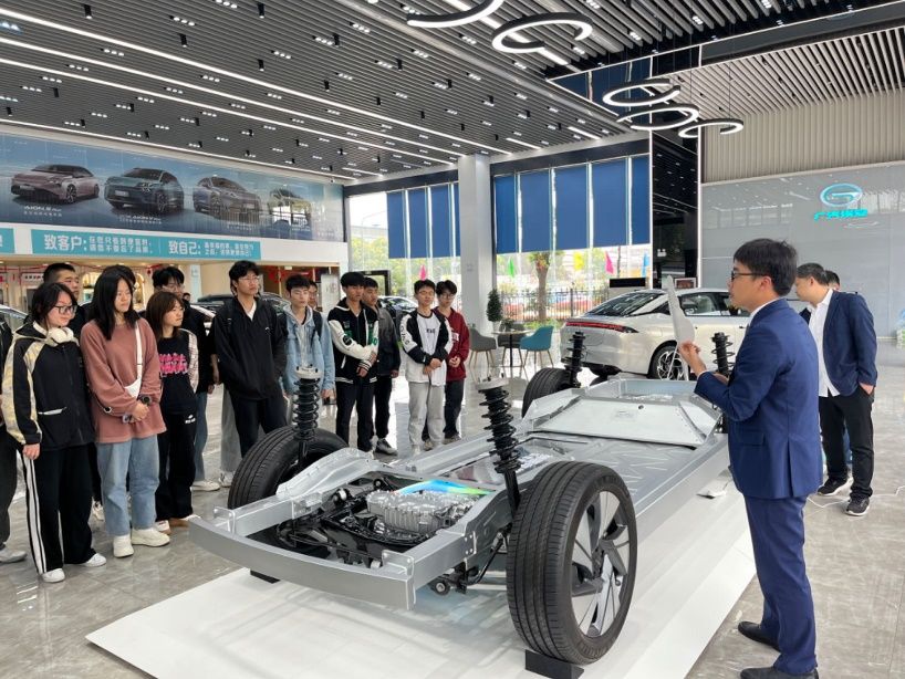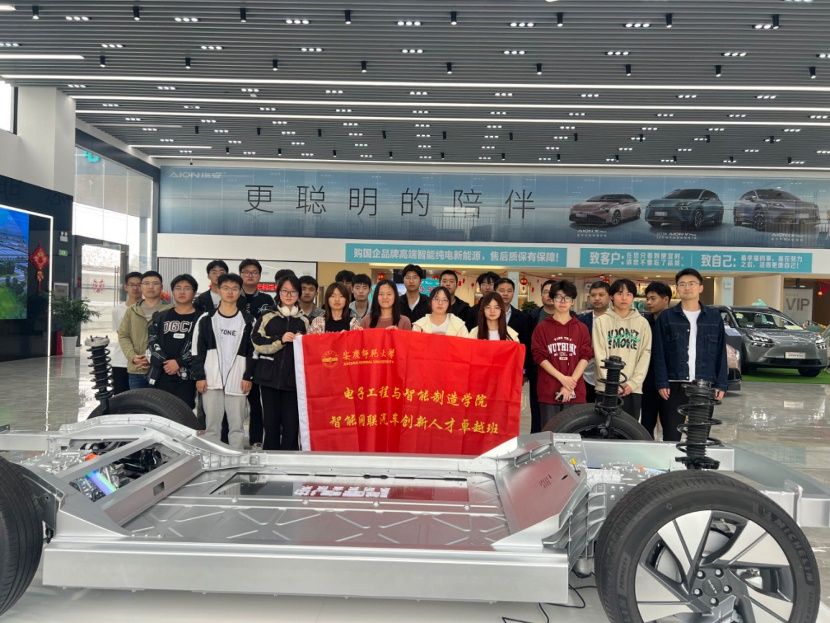 4月3日,电子工程与智能制造学院智能网联汽车创新人才卓越班前往安徽环新汽贸埃安体验中心开展课外教学活动,机电系主任,车辆工程教研室教师及全体卓越班员工参加了此次活动。