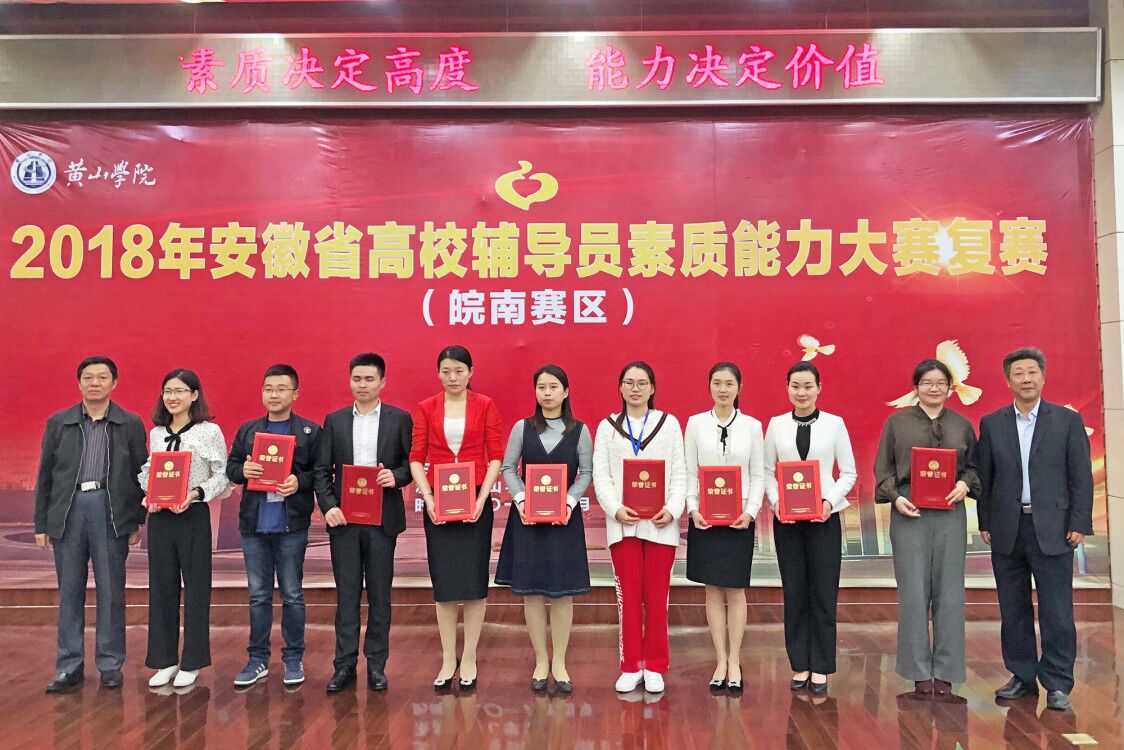4月22至24日,2018年安徽省高校辅导员素质能力大赛(皖南赛区)复赛在黄山学院举行。经过综合笔试、谈心谈话、案例分析和理论宣讲等四个环节的比拼和激烈角逐,公司辅导员徐辉老师在比赛中脱颖而出,获得2018年安徽省高校辅导员素质能力大赛(皖南赛区)二等奖,以皖南赛区复赛总分第四名的优异成绩顺利晋级2018年安徽省高校辅导员素质能力大赛决赛。 (物电学院)