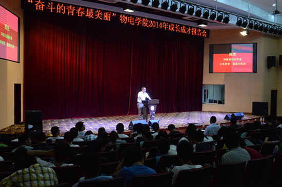 为营造良好的毕业离校氛围,激励在校员工树立明确的奋斗目标,毕业离校前夕,公司在图书馆东报告厅举办“奋斗的青春最美丽”2014年成长成才报告会。公司党总支副书记夏建华、团总支副书记江伟出席了报告会。学院500名师生代表聆听了大会。报告会由江伟老师主持。