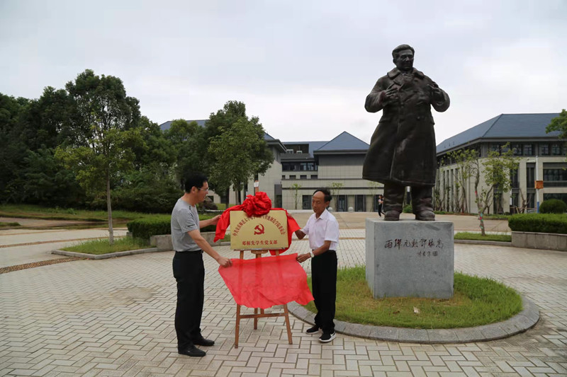 为将老员工党史学习教育推深做实,引导青年老员工在安庆当地名人精神中追寻到红色基因的源代码,让老员工党员成为弘扬红色文化和赓续红色基因的先锋力量,9月29日下午,公司党委在学校稼先楼旁邓稼先雕塑前举行了简短而又庄重的邓稼先员工党支部成立大会暨揭牌仪式。邓稼先旁侄邓敦华老先生应邀出席了活动,公司党委书记江贵生、副书记关德军、员工党支部书记及全体邓稼先员工党支部党员参加了揭牌仪式。仪式由党委副书记关德军主持。