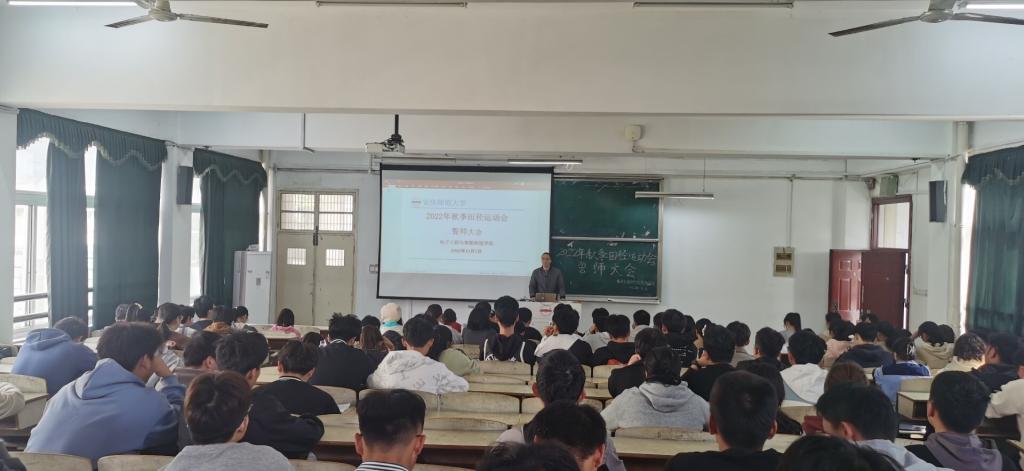赛前,电子工程与智能制造学院于稼先楼多二教室举行此次运动会的誓师大会。学院领导、辅导员代表、运动员代表、志愿者代表及全体员工会成员参加大会。大会由团委负责人陈秋生主持。