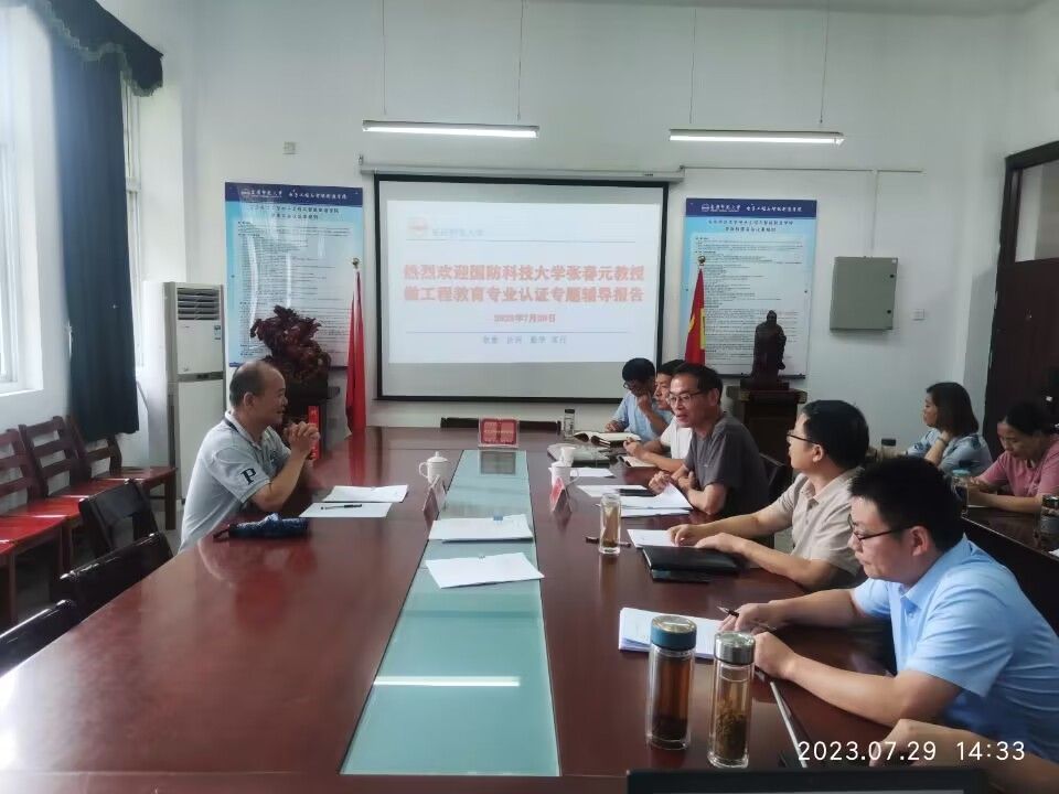 7月29日,工程教育专业认证专家、国防科技大学张春元教授应邀为公司做工程教育专业认证辅导,校教学评建办公室主任黄兴帅,电子工程与智能制造学院经理董甲东,副经理黄忠、章礼华,计算机与信息学院副经理吴海峰等出席会议,公司拟率先申请工程教育专业认证的相关专业教师参加了会议。黄兴帅主持会议。