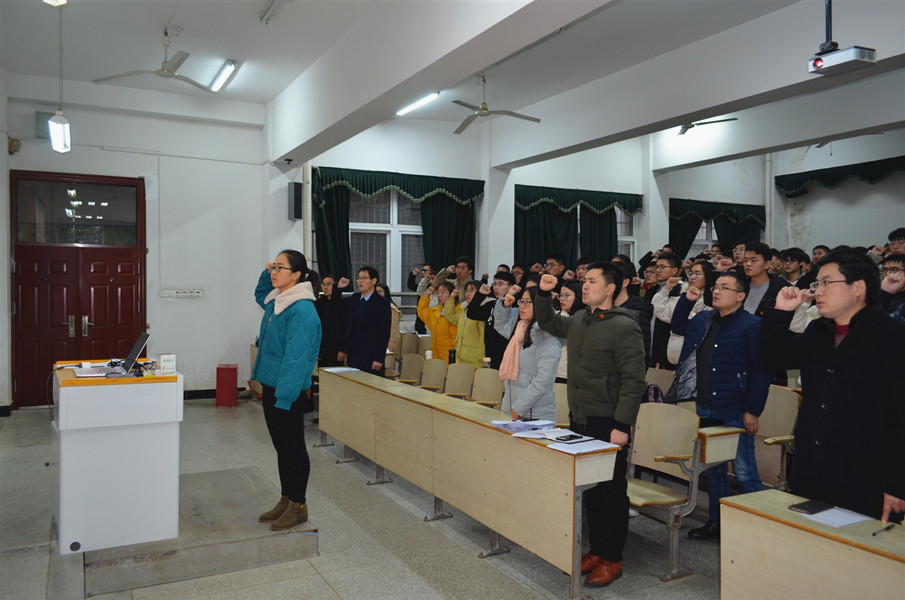 12月18日下午,公司党委在稼先楼一楼多媒体教室举行新党员入党宣誓仪式暨老党员重温入党誓词。公司党委书记江贵生主持仪式并讲话,学院全体党员参加了仪式。