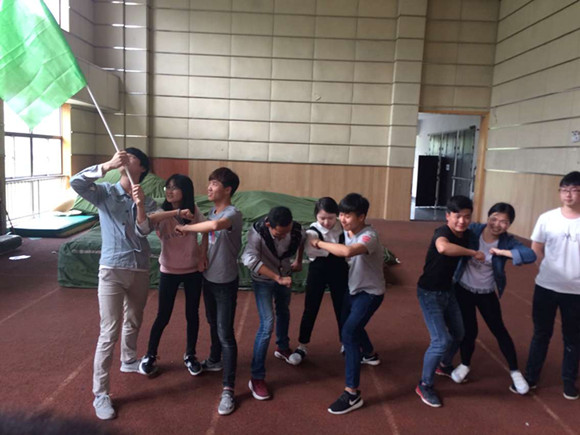 同学们在导师的引导下简单地做了些热身游戏后,便开始了今天的素拓环节。导师将参训人员随机分组,大家通力合作,发挥集体智慧,设计出富有创意又极具个性的队名、队旗、口号和队形。随后队员们又相互配合、团结协作,共同完成了“巧解麻绳”、“脚踏虚空”、“拉绳运人”等一系列项目。结束后大家都进行了活动总结和心得分享,“今天的活动虽然很累,但是真的很开心,让我认识到了一些新朋友,也让我意识到团队合作的重要性”机械党小组潘源说道。