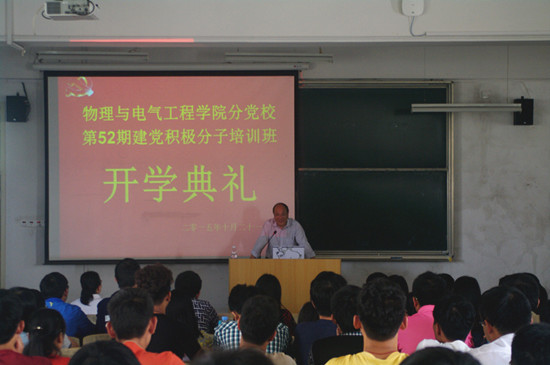 开学典礼上,党校班主任操龙德老师宣读了本期培训班教学安排和培训班学规。2013级物理学专业唐江敏同学作为学员代表进行了表态发言。