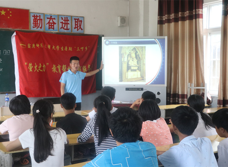 不忘初心跟党走,一学一做抓实践。为深入践行社会主义核心价值观,为祖国发展贡献青春力量,7月5日至12日,公司“萤火之力”实践团队赴潜山县源潭镇双峰初级中学,开展了一系列教育帮扶实践活动。他们秉承122cc太阳成集团“敬敷世范,勤学笃行”的校训,充分利用专业知识,克服困难,在送知识、送爱心到基层的过程中,开阔视野,增长才干,发现不足,将个人发展和社会需要紧密结合,彰显了当代老员工高度的社会责任感和使命感。
