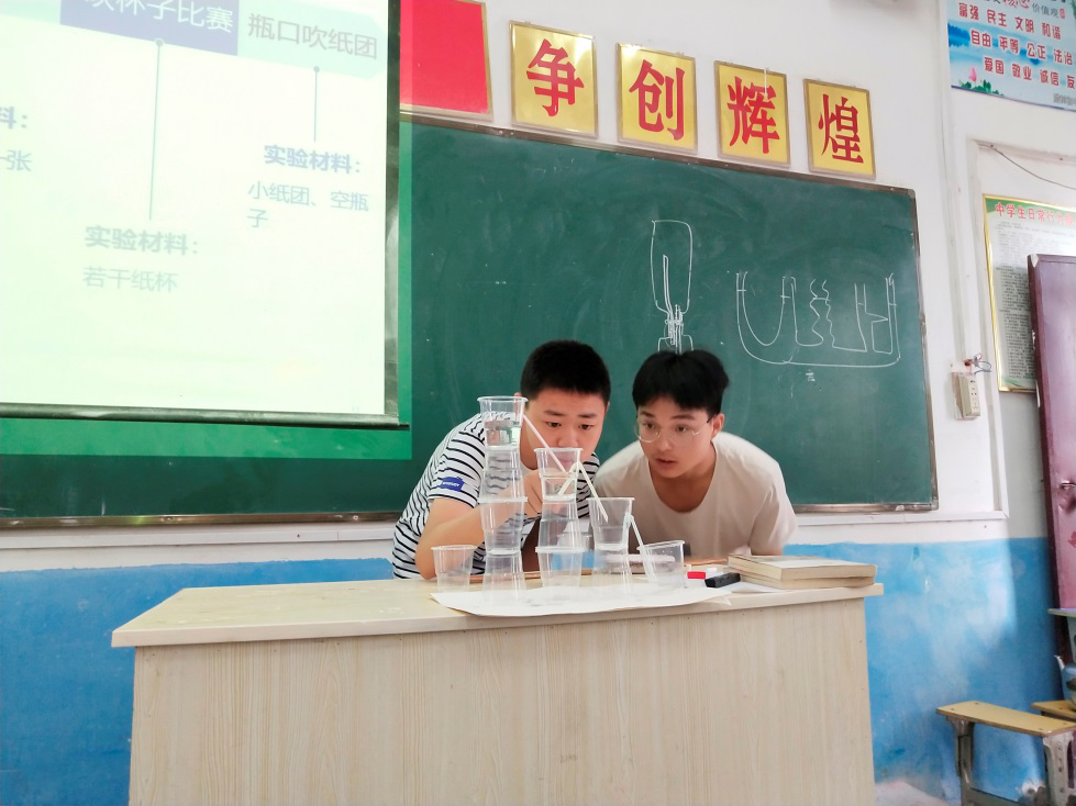 在创建团队之初,“怀爱暖芽”助教服务队便在指导老师的指导下顺利的在腊树初中进行了问卷调查,7月2日,该校董事长带领这28名员工在志愿者们陪同下参观了公司理科实验室并共度午餐。志愿者们通过收集而来的调查问卷以及那一天的相处,在正式开展实践活动之前就对服务对象们有了初步了解。在出发之前,志愿者们多次开会,以培养员工学习兴趣、关爱留守儿童心理健康为目的做好分工并反复修改活动安排。