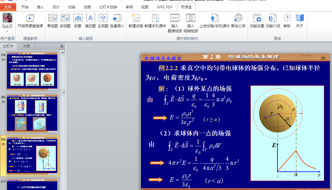 马业万老师本学期讲授2017级电子信息科学与技术1、2班《电磁场与电磁波》,2017级微电子科学与技术《电磁场与电磁波》,2018级物理学1班《电工学》和研究生《物理教育测量与评价》。《电磁场与电磁波》主要介绍电磁场与电磁波的基本规律、计算方法、电磁场传播特点及其应用等。由于电磁场看不见、摸不着,导致课程概念抽象,同时课程理论性强、对数学基础要求高,,员工感到非常困难。线下板书课堂教学如此,线上教学的情形就可想而知。《电磁场与电磁波》公式推导繁琐,线上教学要补充大量公式推导过程,促进员工的理解和掌握。《电工学》教学需要图文并茂,电路图和公式推导都比较多,需要大量时间制作课件。