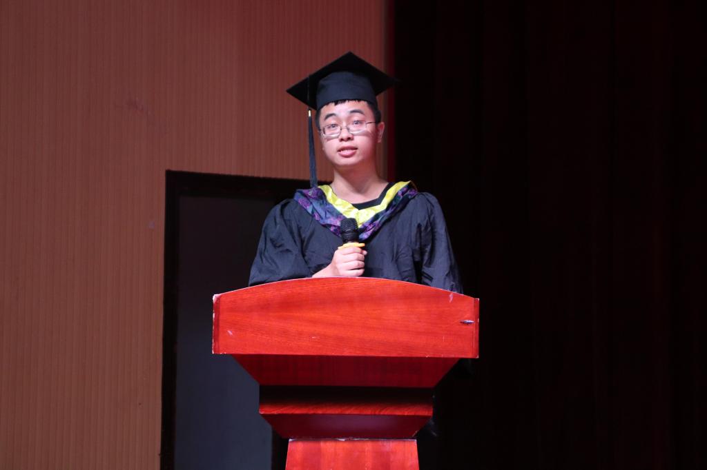 学长学姐和学弟学妹之间有说不尽的深情厚谊,有道不完的岁月感怀。非毕业生代表俞敏同学饱含深情的表达了对学长学姐们的感谢与祝福。毕业生代表袁航同学回顾了四年师大生活,当年红色的录取通知书映衬着欲穷千里目的无限期待,而今的学士服镌刻着更上一层楼的青春誓言。“祝福毕业生们前程似锦,不可限量,祝愿母校的明天再创辉煌”。