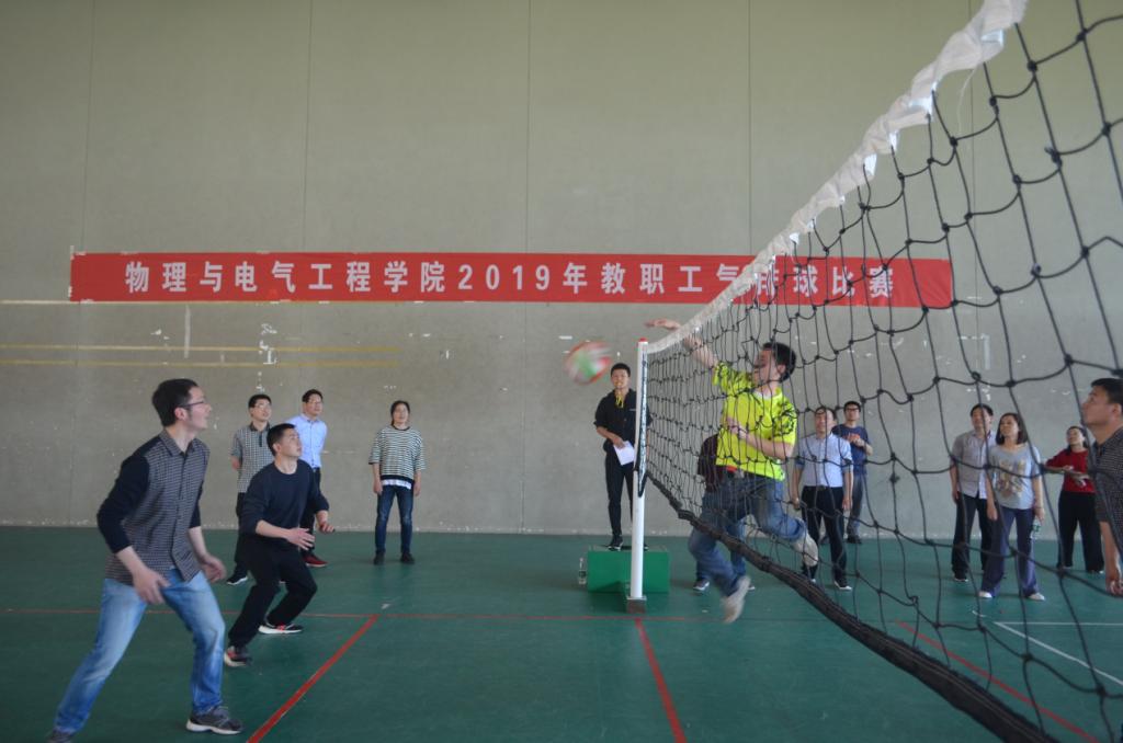 赛场气氛热烈,观众呐喊声、欢呼声响彻全场。运动员精神抖擞,英姿飒爽,时而奋起扣杀,时而奋力拦网,齐心协力,配合默契,用坚毅和汗水诠释着团队协作的精神,既增强了技术,更赛出了友谊,展现出良好的竞技水平和赛场风范。最终,物理B队四场全胜,赢得冠军,物理A队三胜一负夺得亚军。(沈永才)