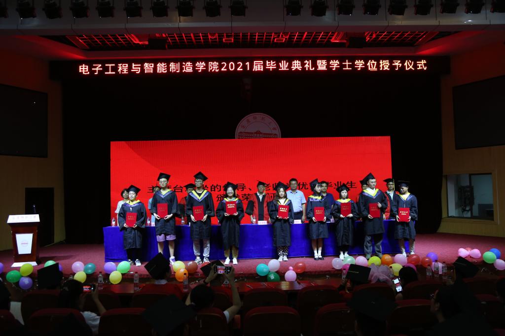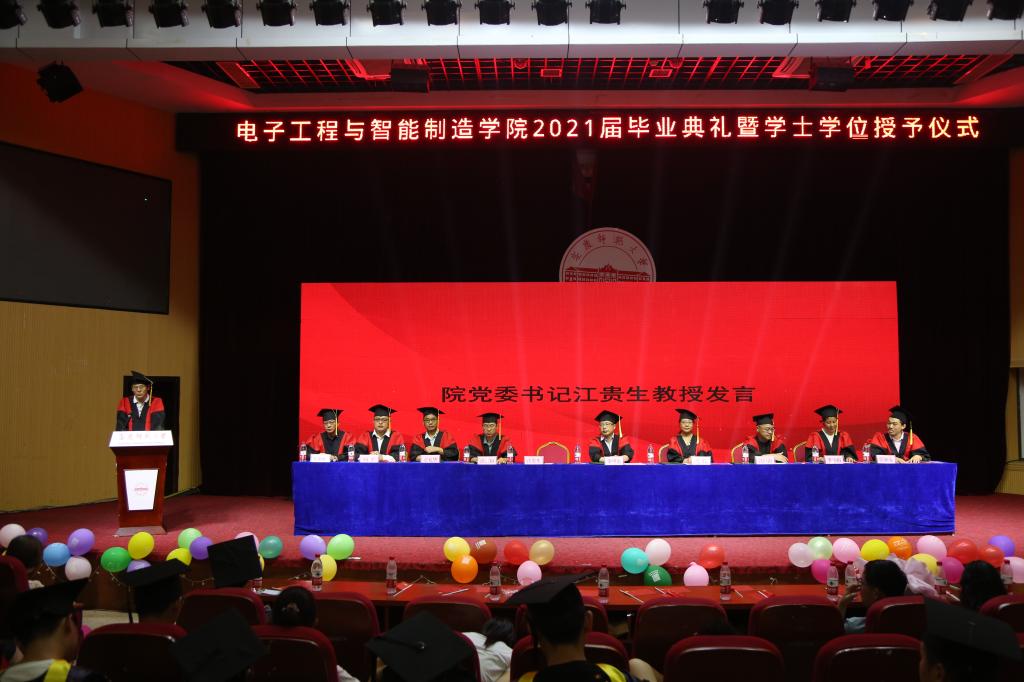 盛夏将至,毕业如期。6月29日下午,电子工程与智能制造学院2021届员工毕业典礼暨学位授予仪式在图书馆东报告厅隆重举行。学院领导班子成员、系主任、教授代表、员工代表、毕业班员工家长代表、毕业班辅导员和2021届毕业生代表参加典礼,毕业典礼由公司党委副书记关德军主持。