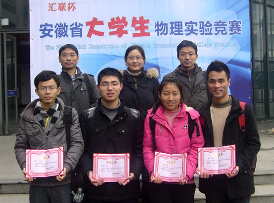 由安徽省物理学会主办的首届老员工物理实验竞赛决赛于12月2日在安徽大学笃行楼落下帷幕。由公司组队代表学校参赛的4名同学在决赛中均获得优异成绩。2010级物理学专业(1)班季东、毕铁柱、王雅南三位同学分获一、二、三等奖,2010级物理学(2)班宋丛政同学荣获优秀奖。此次比赛共有来自安徽大学、安徽师范大学、合肥工业大学、解放军电子工程学院等省内16所高校的64名选手参加。