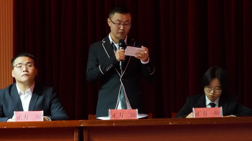赛后,资源环境学院辩论队队长贝亦明对辩论赛进行了点评,他充分肯定了选手们的表现,同时也提出了中肯的意见和建议。他表示,参赛选手准备的资料很充分,但要将资料充分消化,做到“脱稿”辩论。同时他希望同学们辩论时多列举一些具体的案例,让观众更深入了解辩论的论题及观点。