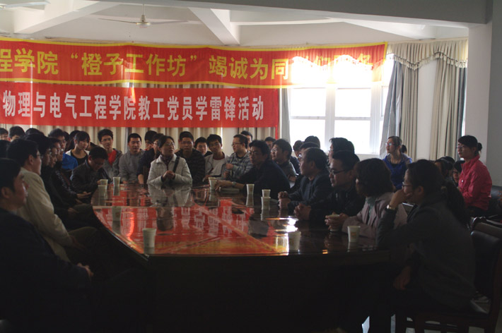 3月28日下午,公司教工第一和第二支部的党员在员工8号公寓的“橙子工作坊”内开展了主题为“扬雷锋精神,助员工成才”的学雷锋活动。学院领导和部分教工党员与09级自动化专业和10级物理专业的员工参加了活动。活动的主要内容是为同学们提供有关考研专业、考研学校选择的咨询和考研专业课的辅导。