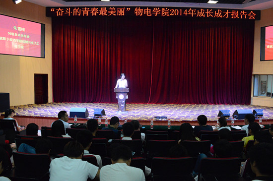 成长成才报告会。6月21日,公司在图书馆东报告厅举行了2014年以“奋斗的青春最美丽”为主题的成长成才报告会。报告会上,邀请2014届和往届部分优秀毕业生就学习、工作、就业、诚信、感恩等方面做了精彩报告。他们坚忍不拔、明德精业、开拓创新、心系母校的良好品质,激励着学院在校老员工端正学习态度、规划老员工活、找准个人定位,为全面提升自己综合素质和服务社会做准备,修德、修智、修行,早日实现成才、成功。(程培培)