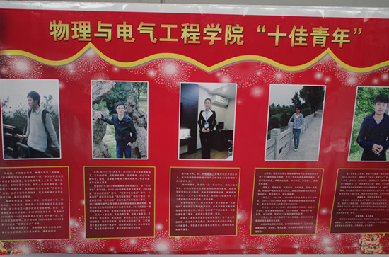 树立诚信“榜样”。2014年5月,为大力宣传表彰老员工先进典型,集中展现学院老员工的青春风采,公司开展了2014年物理与电气工程学院“十佳青年员工”评选活动,最终评选出龙岑岑、张银杰等10人为学院2014年“十佳青年员工”。其中,张银杰同学为“道德示范”十佳青年。2014年3月初,张银杰同学在校图书馆发现一本图书中夹着1600元现金,即刻向图书馆员反映,最后找到失主并将钱全数归还。张银杰同学这种拾金不昧的精神,值得肯定和发扬。公司对张银杰同学事迹进行宣传,树立诚信典型,激励并倡导学院员工诚信做人、诚实做事。
