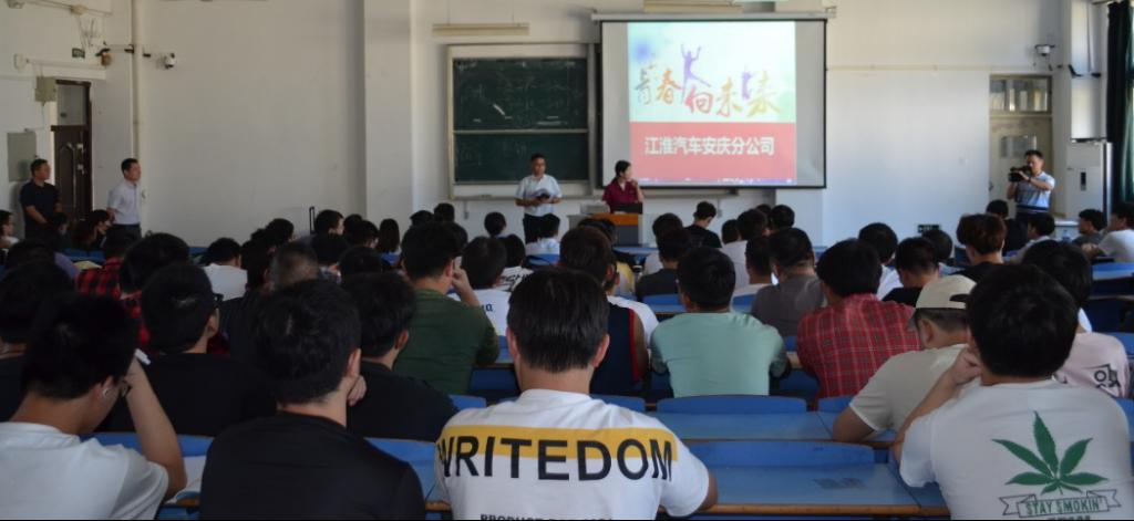 随后,党委副书记关德军带领各企业负责人、学院专业负责老师、各班辅导员在现场进行组织宣传, 2022届6个专业580余毕业生参加了现场宣讲会。安徽江淮汽车集团股份有限公司安庆分公司、安徽环新集团、安庆楚航科技电子有限公司、江淮华霆(安庆)电池系统有限公司、安徽腾创智能科技有限公司等10家企业分别就实习计划、实习安排、实习环境和岗位职责等内容进行了介绍,并就职业成长规划、实习要求与员工进行现场交流。