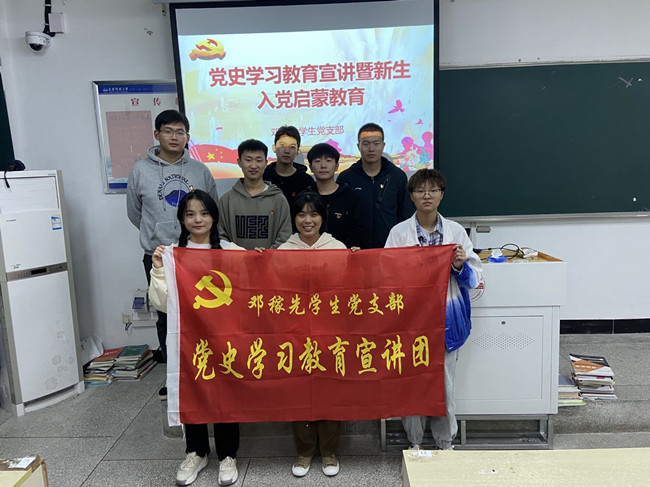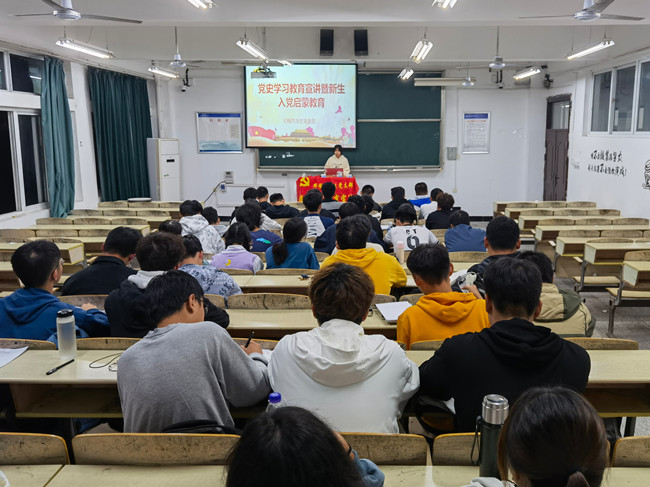 为深入推进党史学习教育,引导2021级新生了解中国共产党百年辉煌的历史,尤其在党史人物中汲取伟大的精神成长力量,增强爱党爱国爱社会主义的意识,激发为国建功立业的理想抱负,并提高新生入党积极性主动性,10月24日,邓稼先员工党支部党史学习教育宣讲团成员深入新生班级开展党史宣讲暨入党启蒙教育。