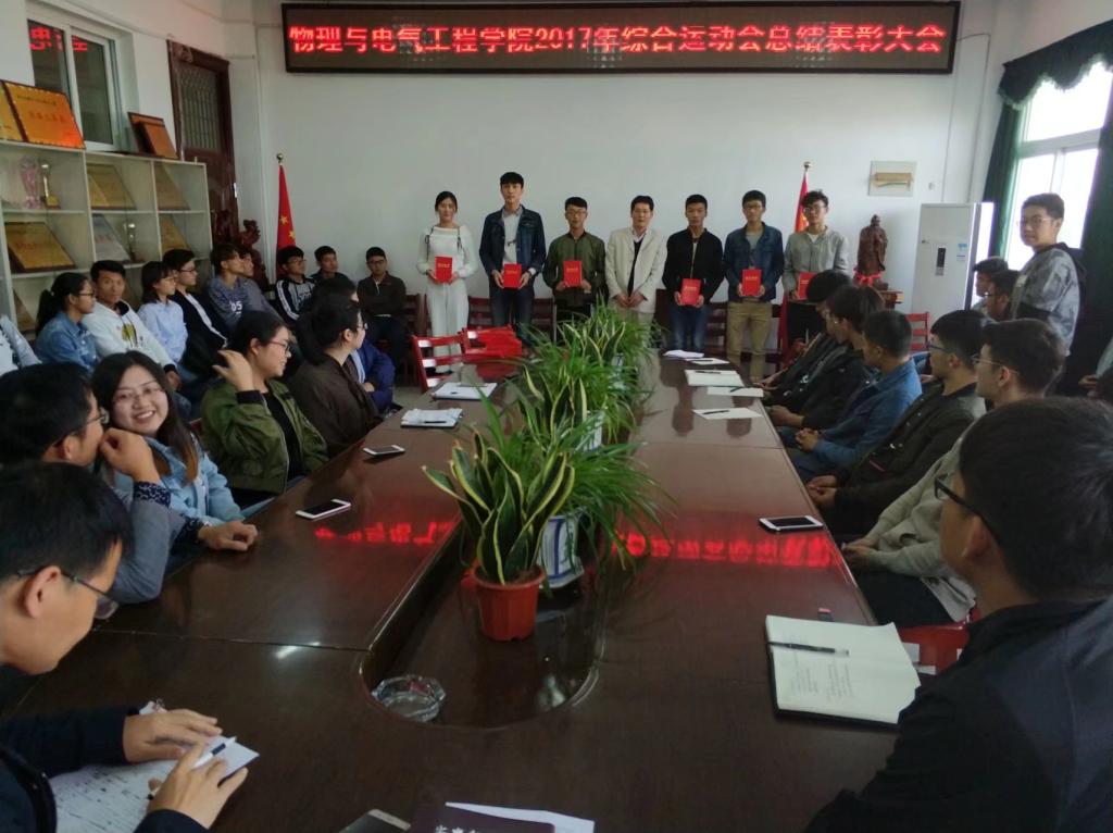 各位老师对运动会中表现优异、贡献突出的运动员颁发荣誉证书并合影留念。在此次运动会中,公司取得了运动会中的综合第一,甲组第二的好成绩。男篮女篮坐拥双冠、男子10000米长跑项目囊获冠亚军、女子乒乓球队取得团体以及单打第一、男排球队首次取得第二名。这些耀眼的成绩将化作强大的动力助推公司学子在各个方面继续乘风破浪,奋力前行。 (韦佳佳 徐辉)