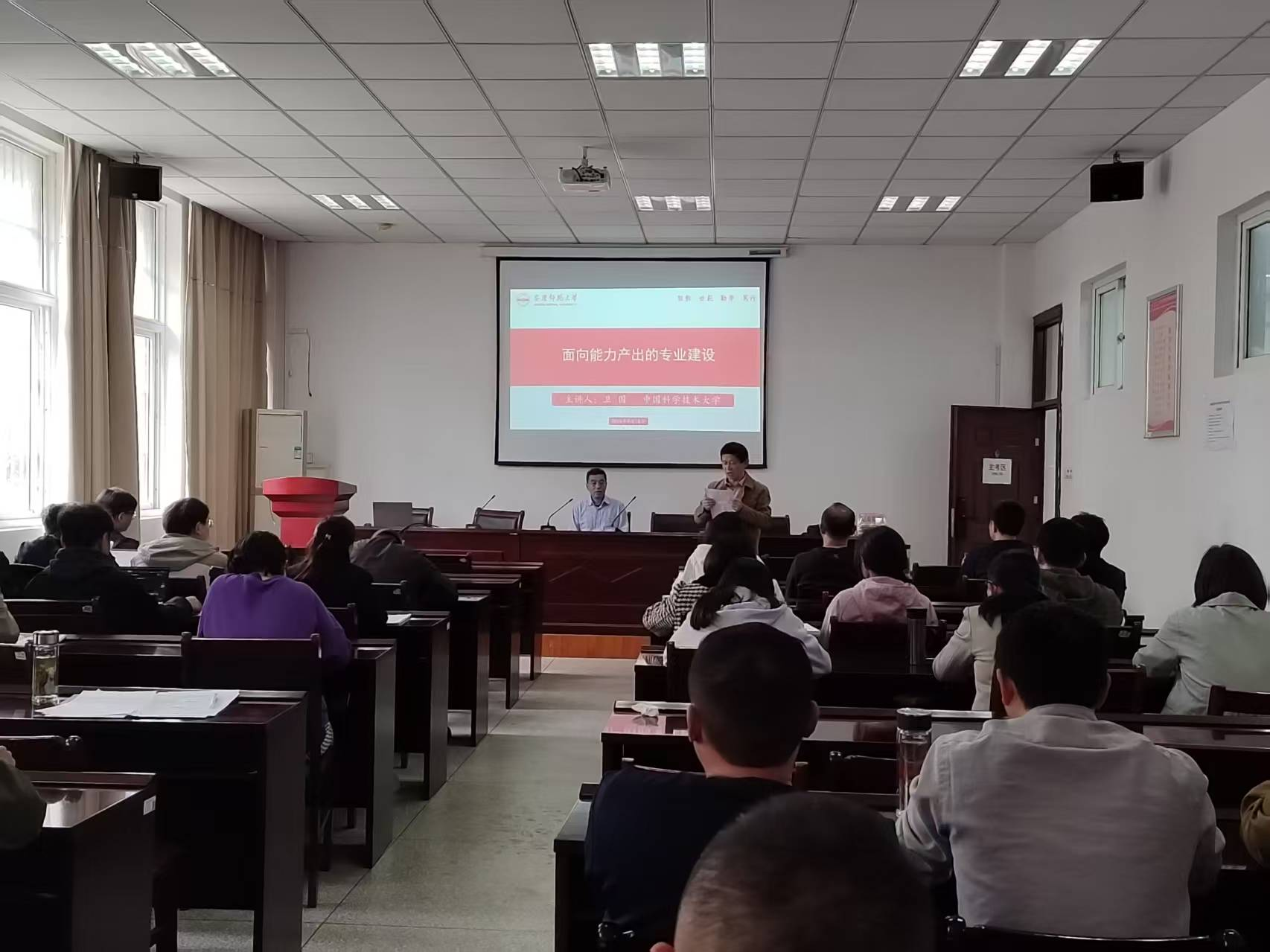 4月15日,122cc太阳成集团举办OBE专题讲座, 特邀中国科学技术大学卫国教授作《面向能力产出的专业建设》主题报告。122cc太阳成集团副经理詹文法、章礼华,学院全体专业负责人、骨干教师及教学管理人员参会学习。