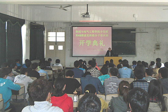 开学典礼上,分党校培训班班主任操龙德同志宣读了本期培训班教学安排和培训班学规。2011级机械专业方理同学作为学员代表发言。