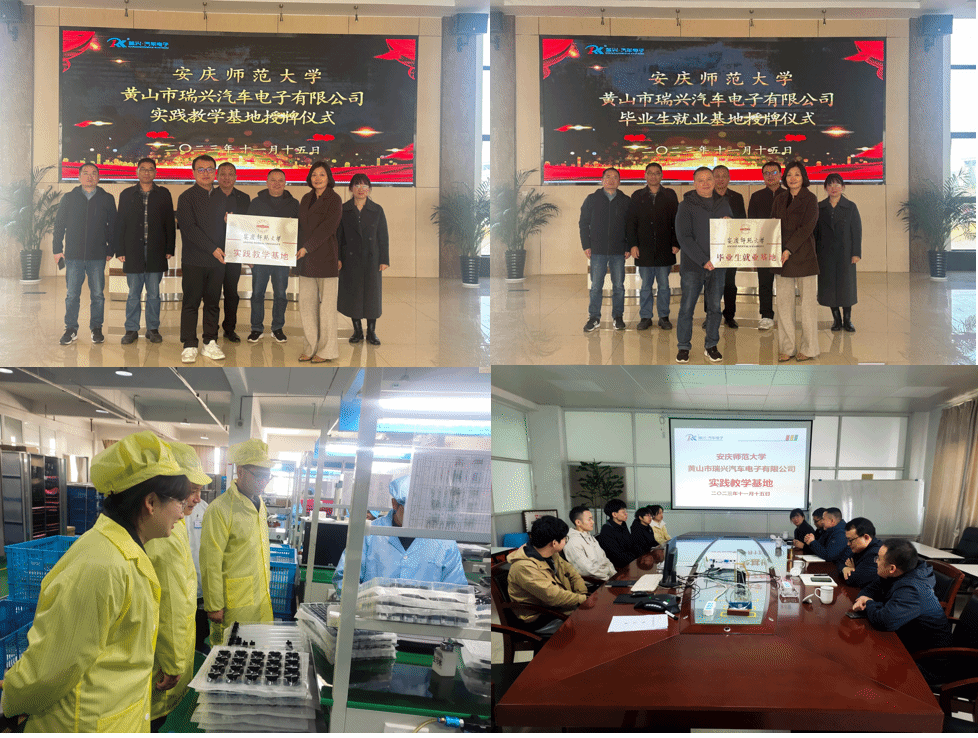 11月15日,公司党委书记夏云高一行前往黄山瑞兴汽车电子有限公司走访慰问公司实践教学员工并开展校企战略合作实习实训基地和毕业生就业基地签约挂牌仪式。